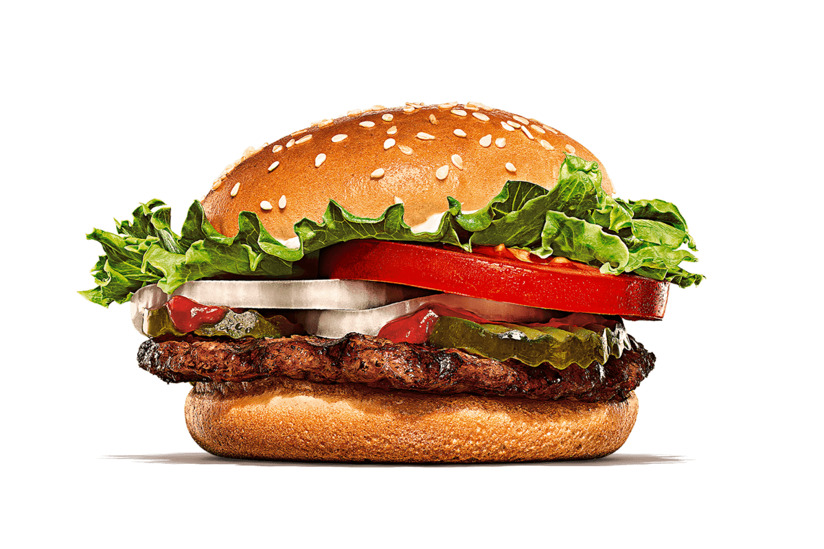 *Deze burger bevat een plantaardig Veggie alternatief voor beef. Deze plantaardige burger wordt op dezelfde wijze bereid als onze originele beef burgers, zodat deze dezelfde unieke Flame-Grilled smaak krijgt. Door deze bereidingswijze kunnen onze plantaardige burgers sporen van rundvlees bevatten. Mocht de burger bacon bevatten (niet vegetarisch), kan deze ook zonder bacon worden besteld.