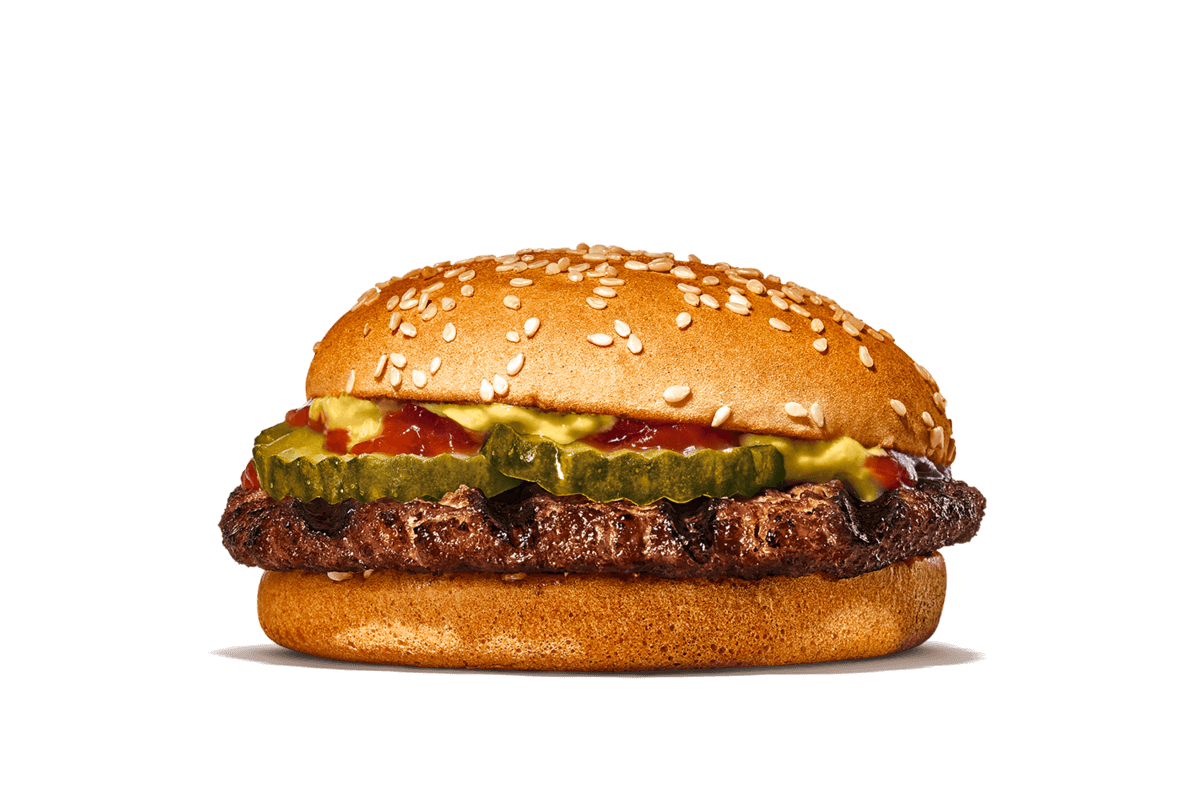 De Veggie Hamburger van BURGER KING® is ‘the real thing’. Een plantaardige Flame-Grilled burger met augurken, ketchup en mosterd tussen een heerlijk versgeroosterd sesambroodje.