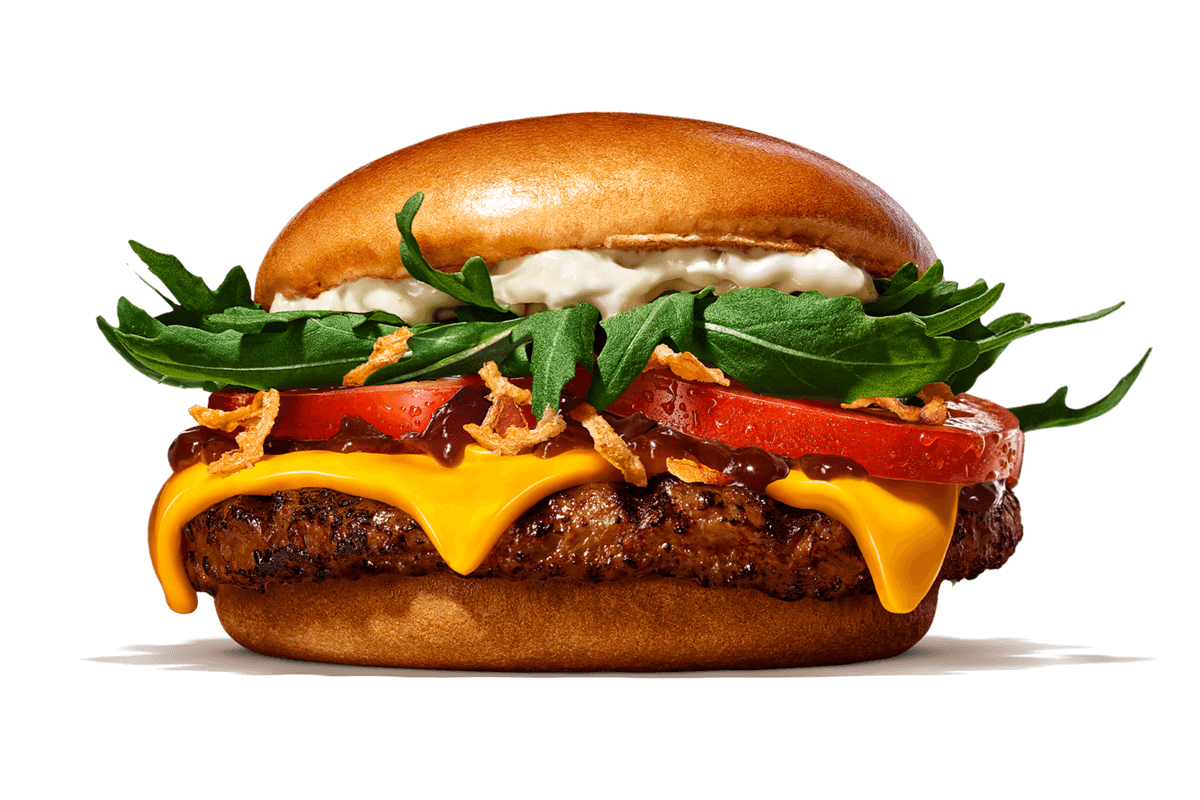 *Deze burger bevat een plantaardig Veggie alternatief voor beef. Deze plantaardige burger wordt op dezelfde wijze bereid als onze originele beef burgers, zodat deze dezelfde unieke Flame-Grilled smaak krijgt. Door deze bereidingswijze kunnen onze plantaardige burgers sporen van rundvlees bevatten. Mocht de burger bacon bevatten (niet vegetarisch), kan deze ook zonder bacon worden besteld.