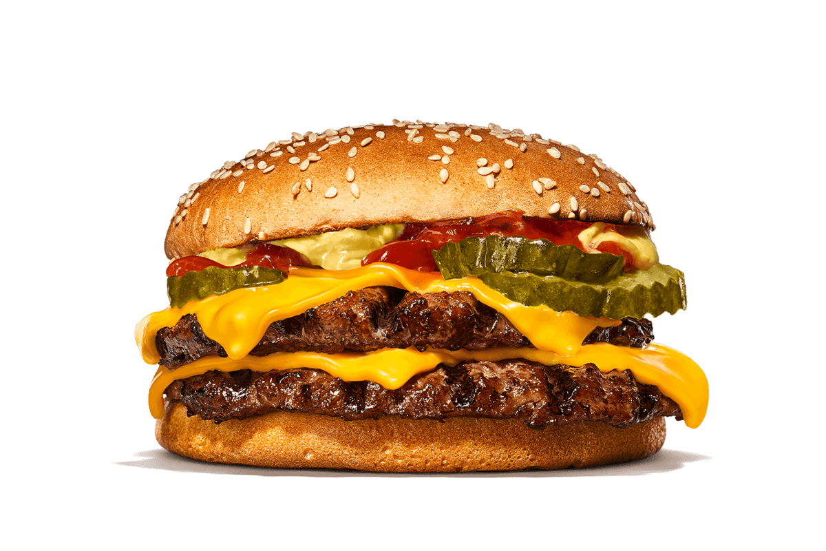Eén Flame-Grilled Burger is geen burger”, moet de uitvinder van de Double Cheeseburger gedacht hebben. Kort daarna ontdekte hij de Double Cheeseburger voor BURGER KING®! Stel je voor: twee Flame-Grilled Burgers in plaats van één. Twee lagen heerlijke smeltende kaas in plaats van één. En dat alles aangevuld met augurk, ketchup en mosterd tussen een heerlijk sesambroodje.